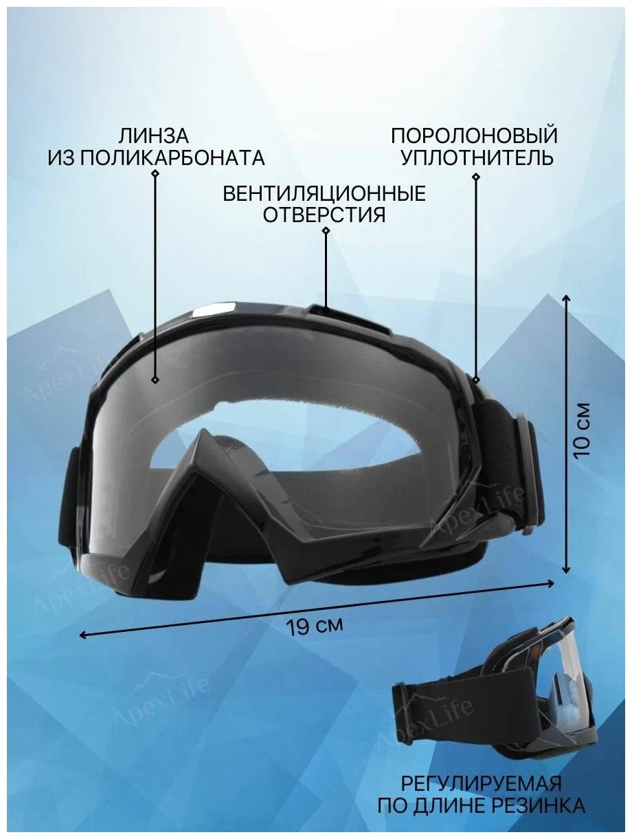 Очки-маска для горнолыжного, мото, вело, спорта. Их так же можно использовать для занятий активными и экстремальными видами спорта: сноуборда, скейтборда, квадроцикла, снегохода. Линза маски обладает отличным обзором и антибликовым свойством. Оправа вентилируемая. Наличие вспененного уплотнителя обеспечивает максимальное прилегание маски и защиту глаз от попадания пыли. Длина ремешка регулируется, что позволяет использовать маску как самостоятельно, так и с большинством видов шлемов. Мото маска мото очки маска мотоциклетная очки мотоциклетные маска мотоциклиста очки мотоциклиста мотозащита велоочки очки велосипедиста очки горнолыжные маска горнолыжная очки для сноуборда очки лыжные лыжные очки очки сноубордические очки для лыж очки велосипедные очки маска защита горнолыжная очки для лыжного спорта очки защитные прозрачные велосипедные очки очки для велоспорта горнолыжная защита очки мужские защитные сноубордические очки очки для велосипеда аксессуары для сноуборда очки защитные мужские очки прозрачные защитные очки спортивные лыжные маска очки горнолыжные аксессуары маска черная защитная.