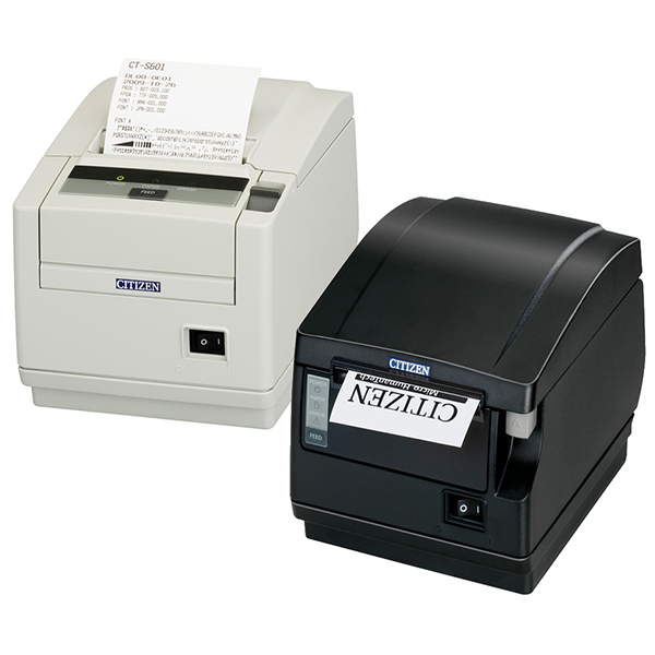 Принтер чеков Citizen CT-S601 — устройство, позволяющее печатать чеки, а также двухмерные и QR-штрихкоды. Модель эксплуатируется в сферах розничной торговли и ресторанного бизнеса. Скорость термопечати составляет 300 мм/с на бумаге шириной от 58 до 83 мм. Модель с автоотрезом на 2 млн операций отличается настенным креплением. Печатающая головка рассчитана на 150 км бумаги. На выходе пользователь получает чеки с разрешением изображения 203 dpi. Фронтальная загрузка расходных материалов обеспечивает защиту внутренних элементов принтера от попадания пыли, влаги и посторонних предметов.